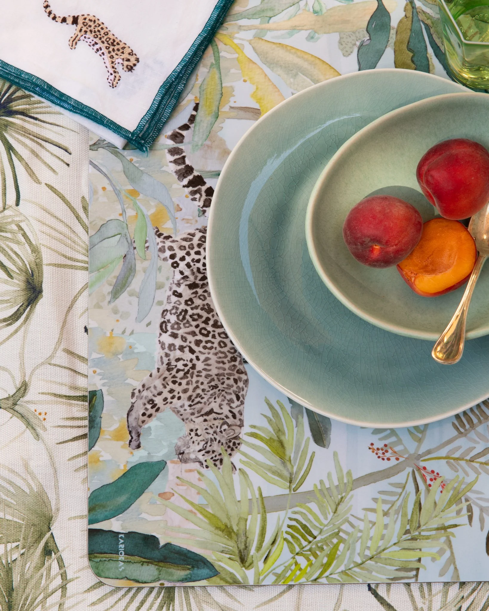 Pair them with our high-gloss melamine mats backed with rich green baize fabric for a complete tropical tablescape.