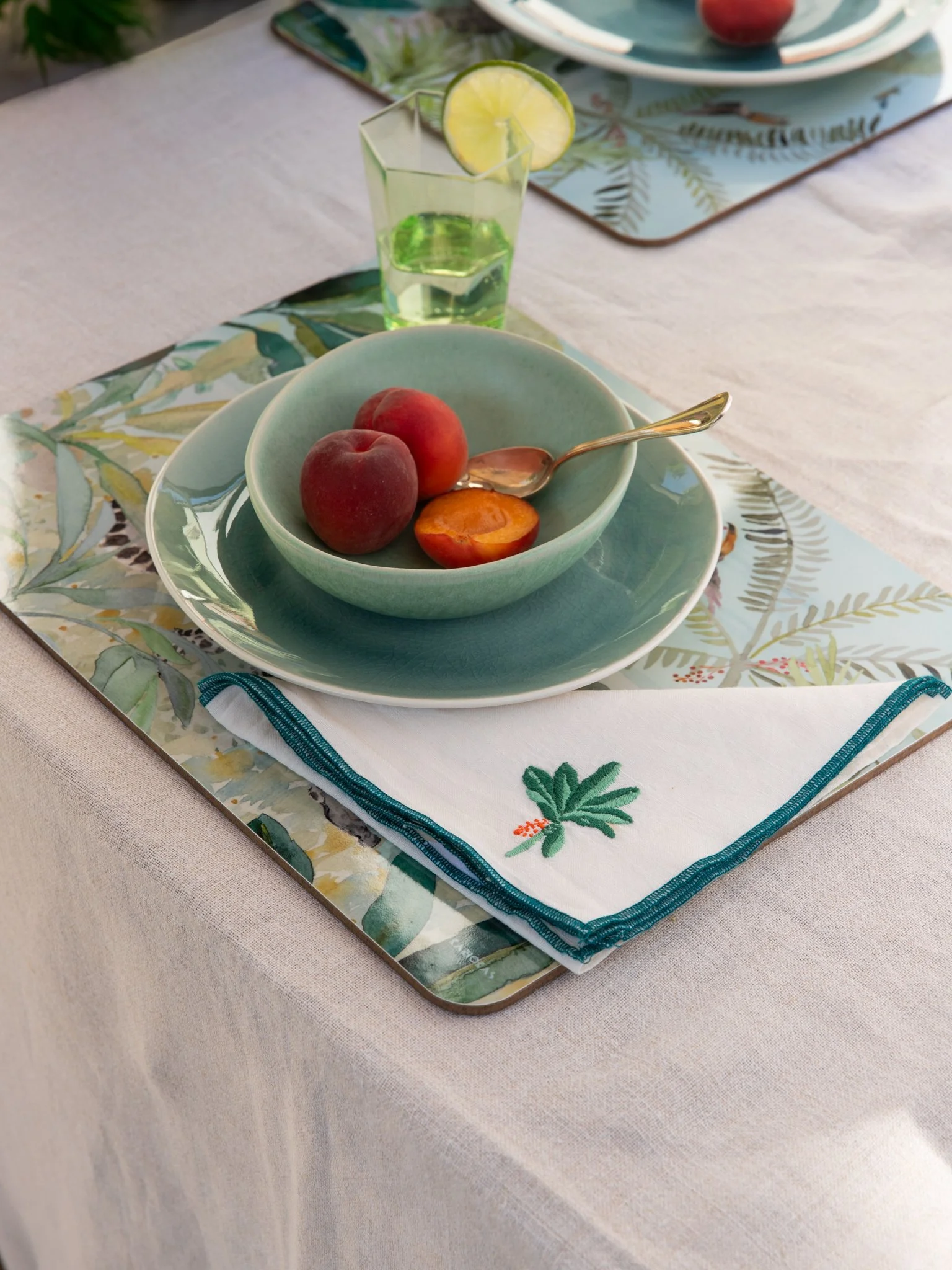 Inspired by our Selva Panoramic wallpaper collection, these hand-embroidered napkins feature a pretty banana tree, bringing bold jungle energy to your dining experience. Each piece is a work of art—elegant, unique, and full of character.